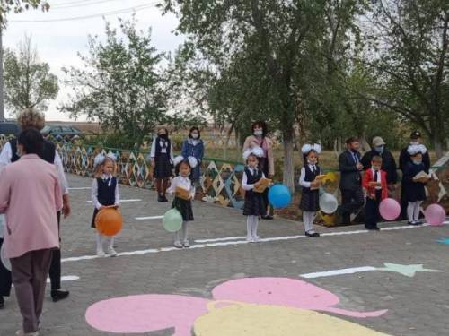 Сегодня в нашей школе прошла торжественная линейка, посвящённая первому звонку для учащихся первых классов: " Кел, балалар, оқылык".