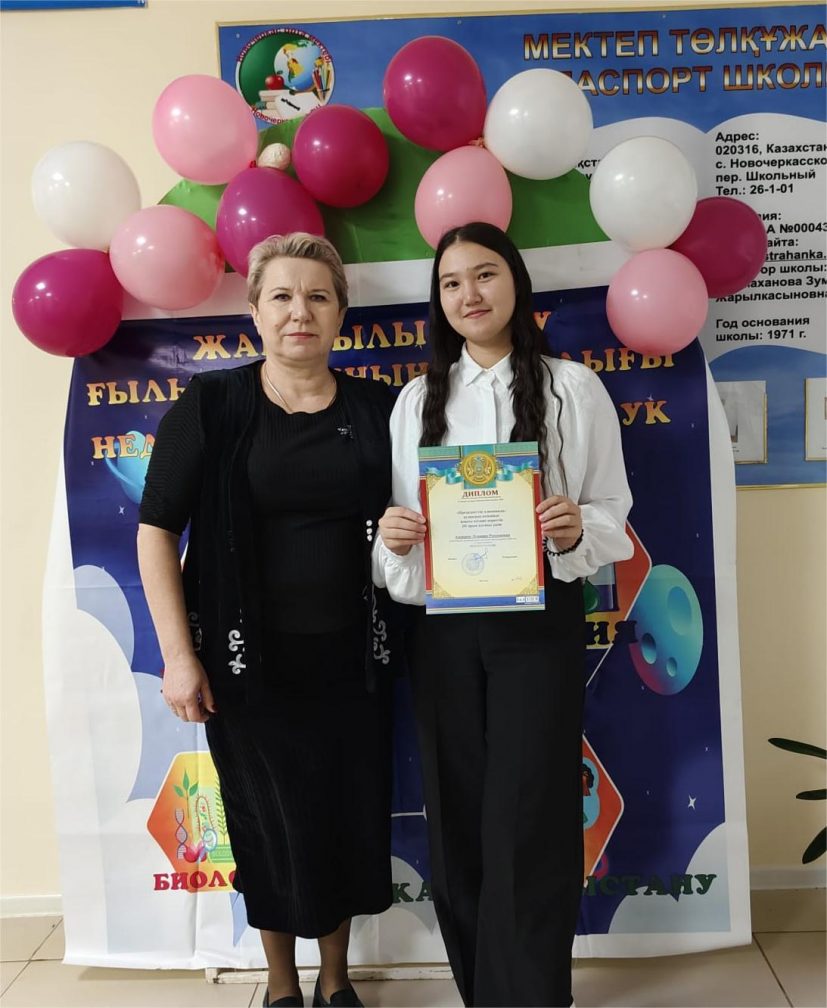 11 сынып оқушыларына арналған жаратылыстану - математикалық бағыты бойынша Президенттік олимпиаданың аудандық кезеңінде "Новочеркасс ауылының ЖОББМ" КММ -нің 11 сынып оқушысы Анапина Лунияра 3 орынға ие болды.