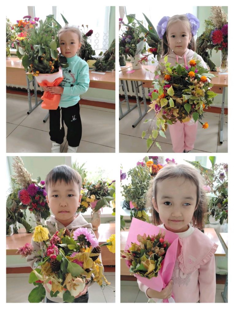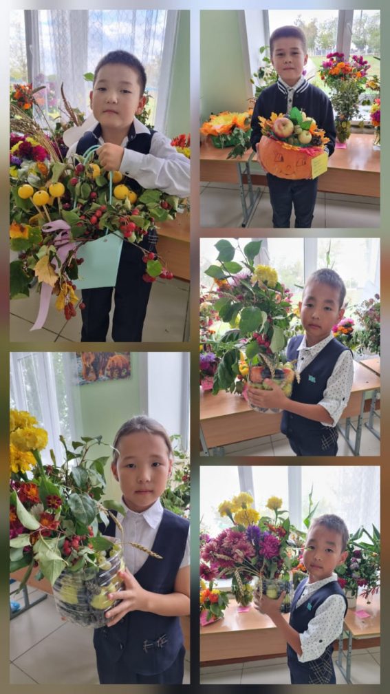 Оқушылар тірі және қағаз гүлдерден, көкөністер мен шөптерден жасалған ерекше композициялар мен қолөнер бұйымдарын дайындады. Бұл жерде балалар өз қиялын және шығармашылық қабілеттерін көрсете білді. Әр сынып өздерінің шығармашылық жұмыстарын ұсынып, көрмені безендіріп, көрермендерге қуанышты көңіл күй сыйлады. Фестиваль нағыз сұлулықтың, шабыттың және достықтың мерекесіне айналды. Балалар жағымды әсер алып, табиғат сұлулығын бағалауды және өз қолдарымен әсем дүниелер жасауды үйренді.