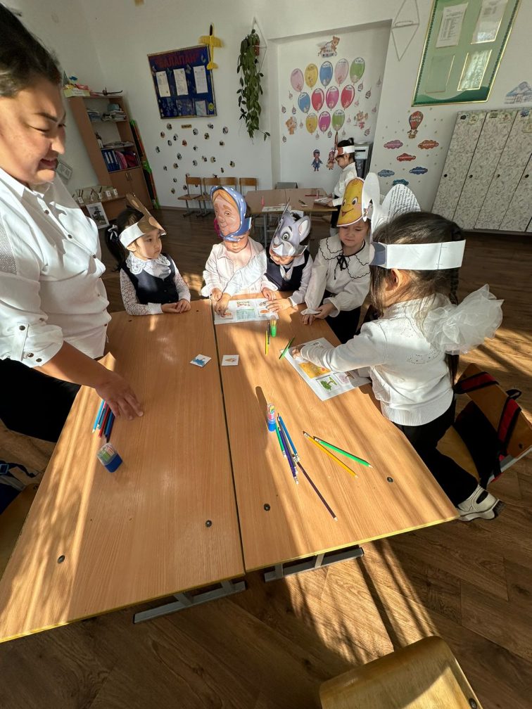22.10 күні бастауыш апталығының жоспары бойынша мектепалды даярлық сыныбында «Не үйрендік,не білдік?» тақырыбы бойынша ашық сабақ өтті. Сабағымыздың мақсаты: ертегі арқылы балалардың тіл байлығын, есте сақтау қабілетін дамыту. Оқушылар «Бауырсақ» ертегісіндегі кейіпкерлердің рөлін ойнау арқылы әр аялдамада берілген тапсырмаларды орындап отырды. Сабақ балалардың қызығушылығын арттырып, ойлау, сөйлеу қабілетін дамытты.