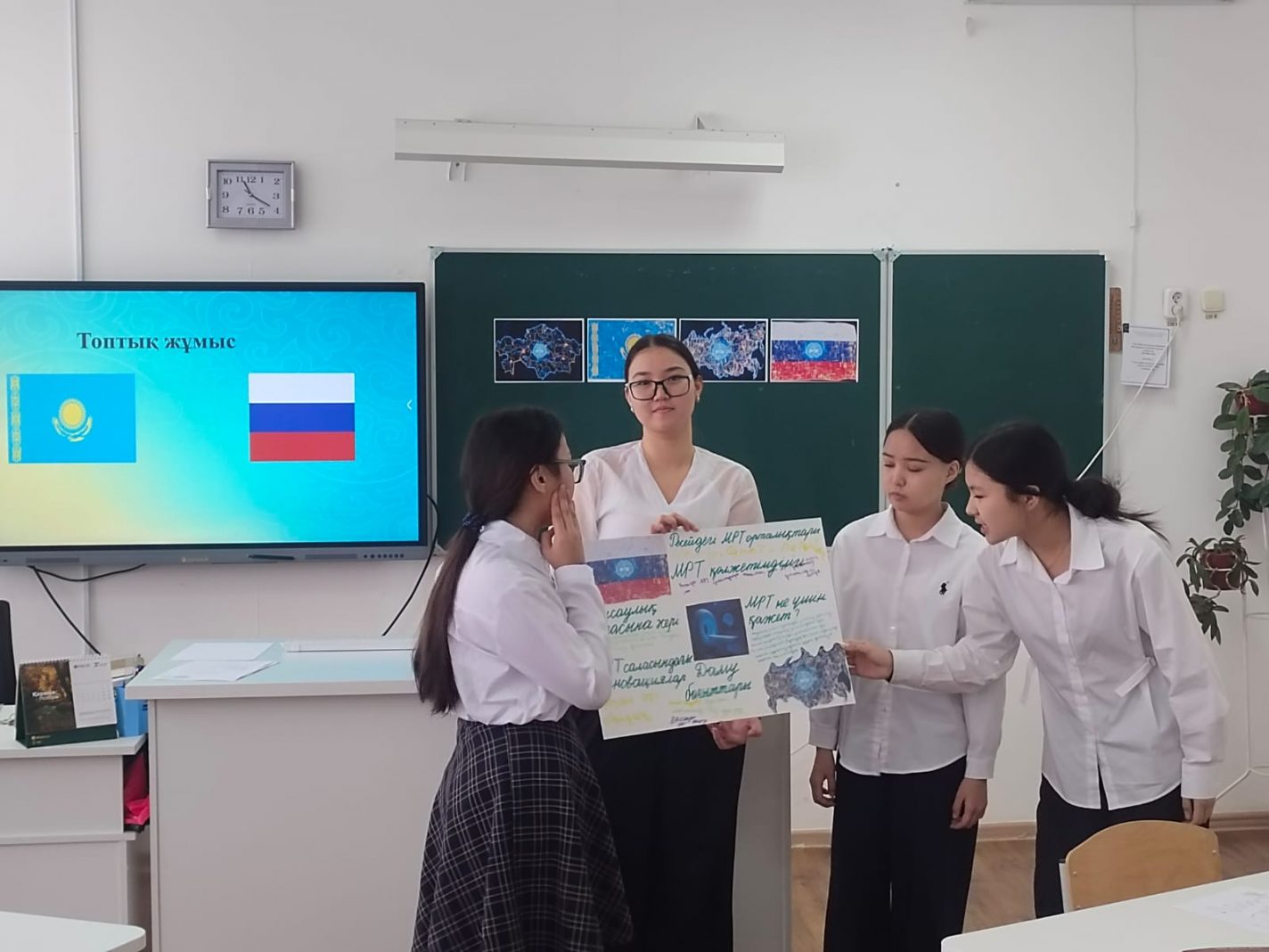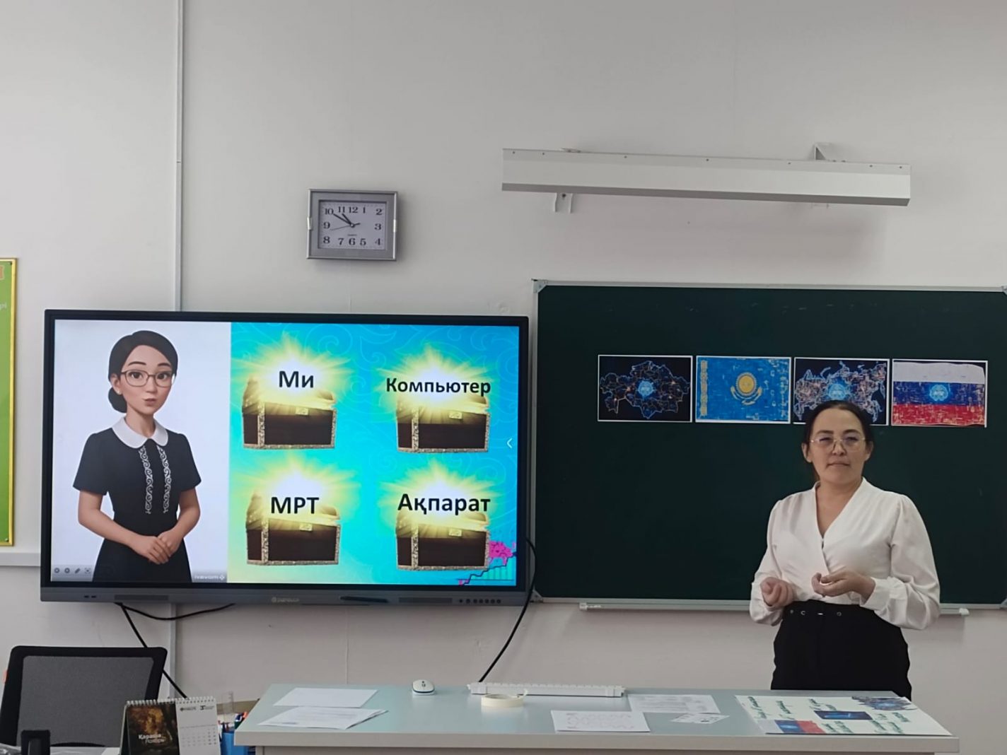 "Жасанды интеллект дәуірінде химия, география, биология" онкүндігі аясында 9 "А" сыныбында биология пәнінен "Ми мен компьютер арасындағы ақпарат алмасу" тақырыбында ашық сабақ өтті. Сабақ барысында интерактивті әдістер, топтық және жеке жұмыс түрлері қолданылды. Оқушылар тапсырмаларды белсенді орындап, өз ойларын еркін жеткізе білді. Сабақта көрнекі құралдар мен цифрлық ресурстар тиімді пайдаланылды. Сабақ мақсатына жетті. Оқушылардың пәнге деген қызығушылығы артты, кері байланыс оң нәтиже көрсетті. Ашық сабақ әдістемелік талаптарға сай ұйымдастырылды және тәжірибе алмасу үшін пайдалы болды.