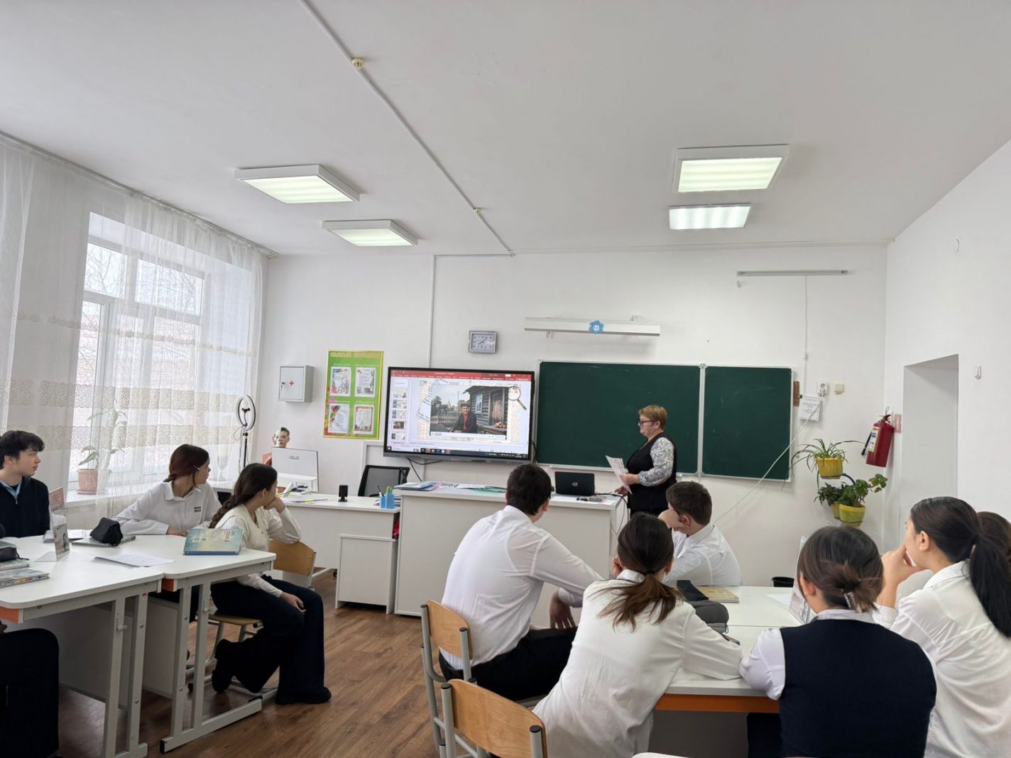 Іс-шаралар жоспарына сәйкес орыс тілі мен әдебиеті онкүндігі аясында 8 «Б» сыныбында В.М. Шукшиннің «Ауыл тұрғындары» әңгімесі бойынша әдебиет пәнінен ашық сабақ өтті.