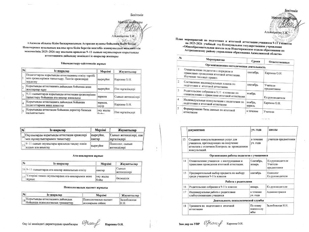 Аттестацияға дайындау жөніндегі іс- шаралар жоспары 2025-2026 оқу жылына.