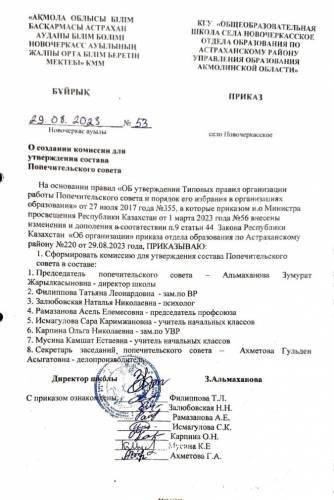 Приказ о создании комиссии для утверждения состава Попечительского совета.