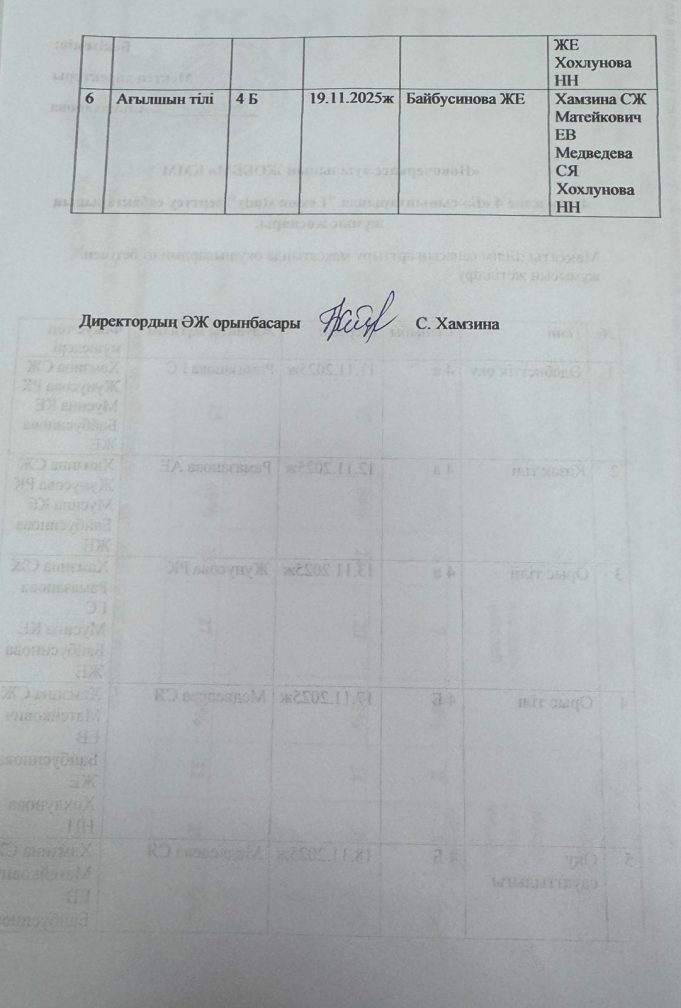 Директордың ӘЖ орынбасары: ____________С. Хамзина