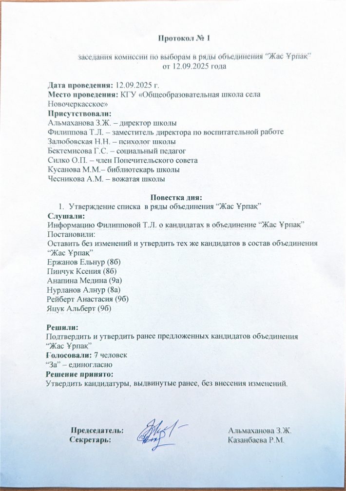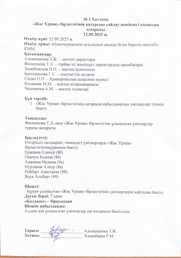 «Жас Урнак» бірлестігінін катарына сайлау жоніндегі комиссия отырысы.