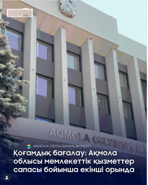 2025 жылға арналған мемлекеттік қызметтер көрсету сапасына жүргізілген қоғамдық мониторингтің қорытындысы бойынша Ақмола облысының жергілікті атқарушы органдары Қазақстан өңірлері арасында екінші орынды иеленді.